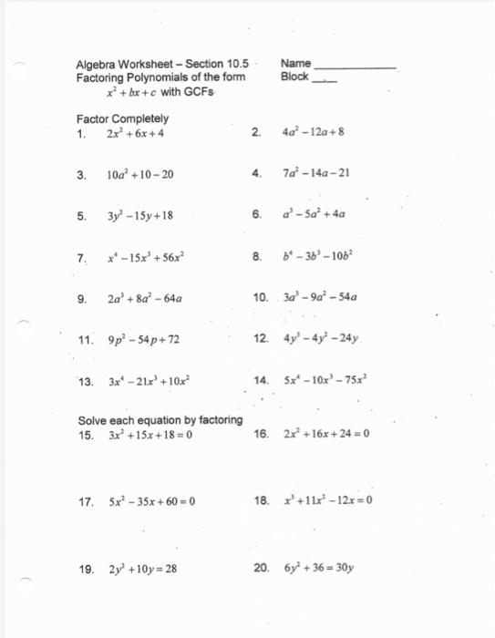 38 math worksheets factoring expressions